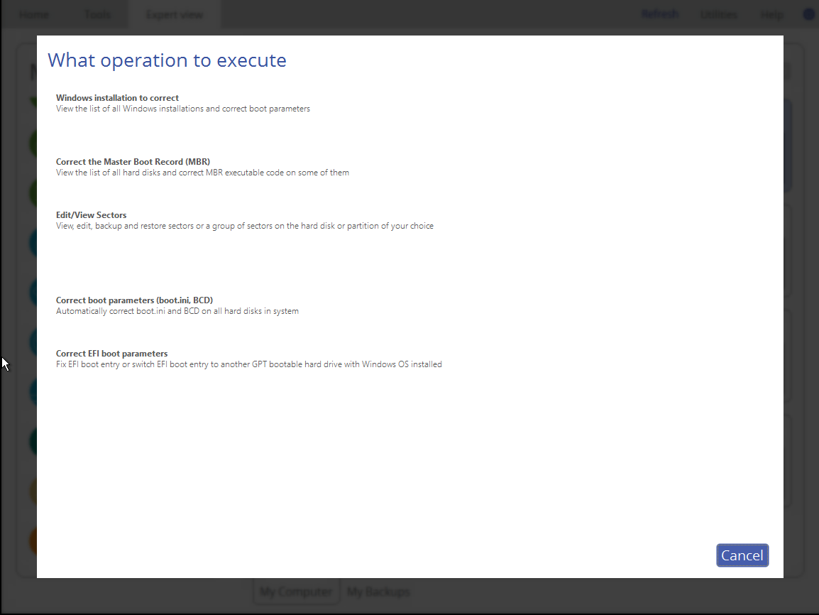 - Prawidłowe pliki danych konfiguracji rozruchu (BCD) dla partycji na wybranym dysku lub partycji na wszystkich dyskach